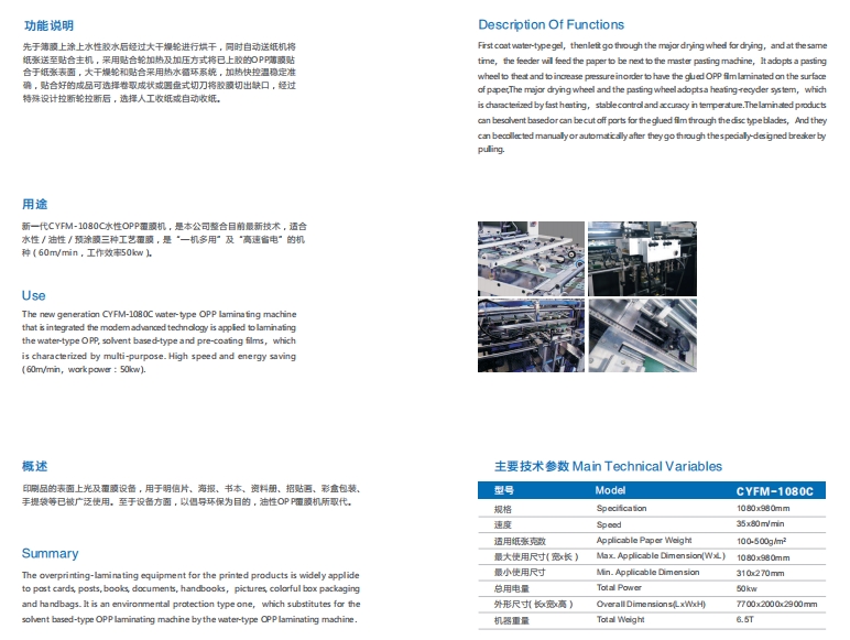 >> CYFM-1080C 全自動OPP覆膜機(水性/油性膠水及預(yù)涂膠膜)